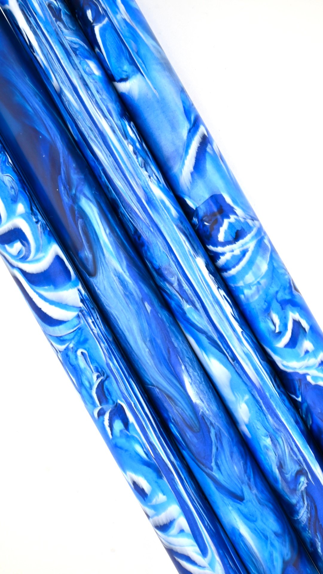 Premium, one of a kind custom bespoke pen blanks. High pressure cast and cured with Alumilite Resin®. 'A River Runs Through It' is cast using opaque dyes with shades of blue and white, resulting in a stunning blank! Cast in small batches and made-to-order, keeping custom pen makers in mind, but also taking into consideration other hand-made craft Makers who require one of a kind, high end materials for their craft. This is it!