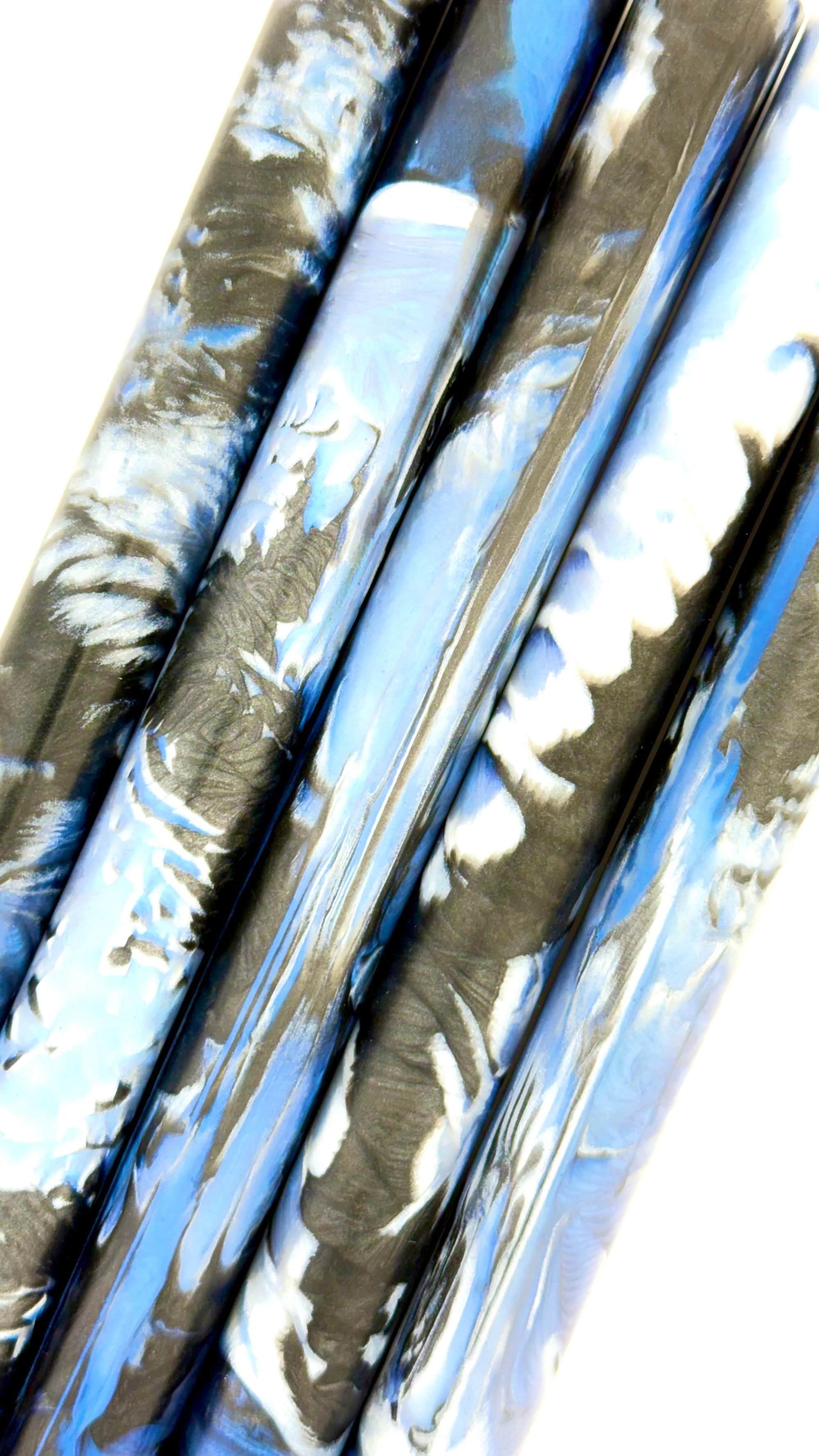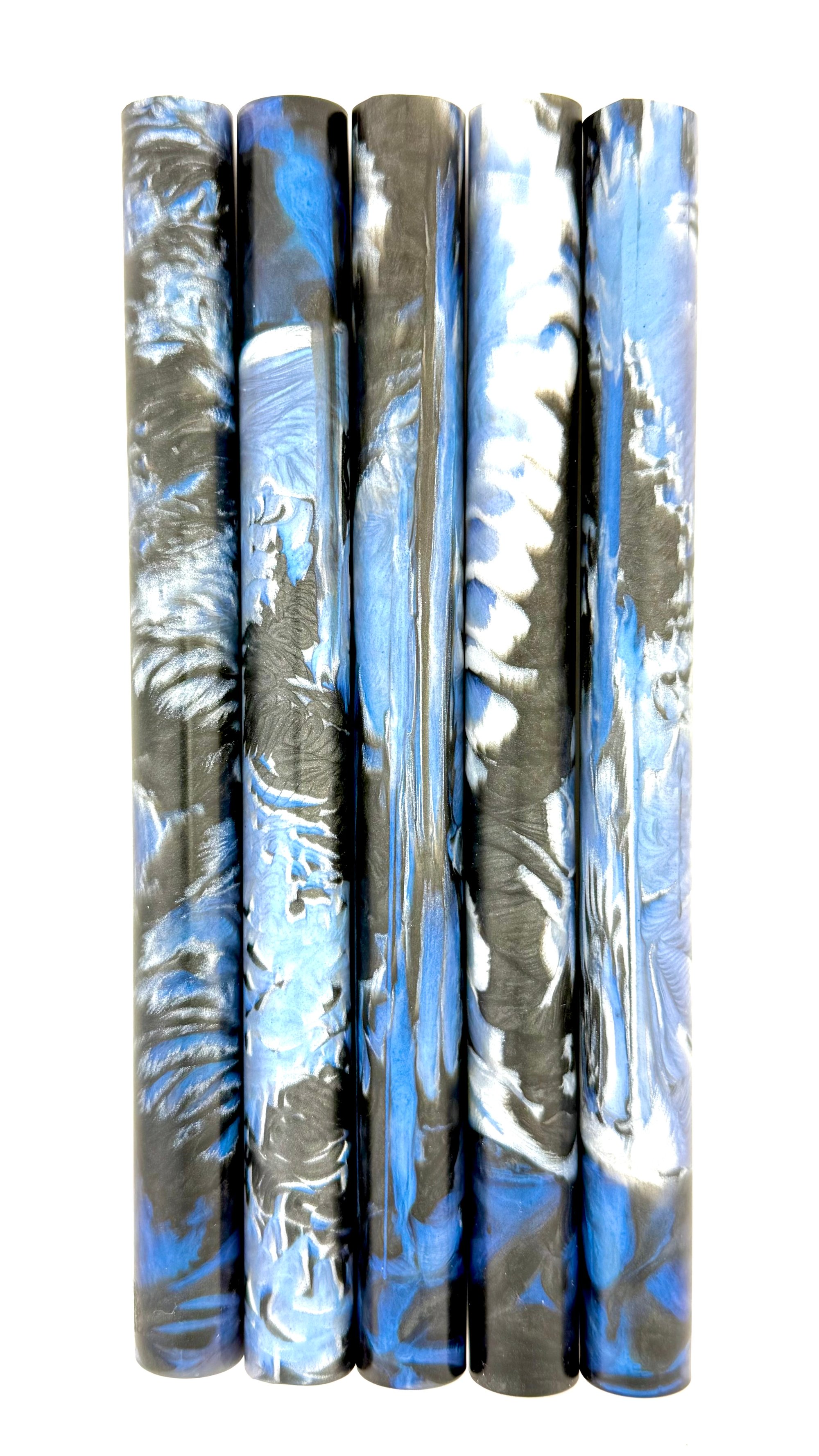 Premium, one of a kind custom bespoke pen blanks. High pressure cast and cured with Alumilite Resin®. 'Black Ice' is a mix of lunar blue, cosmic grey and creamer white, along with translucent holographic grey resin, giving it beautiful depth. Made in small batches. These are exclusive, top of the line blanks we offer to custom Makers of fine handmade crafts. Perfect for the high end fountain pen maker, but fantastic for any Maker looking for unique, one of a kind materials. This is it!