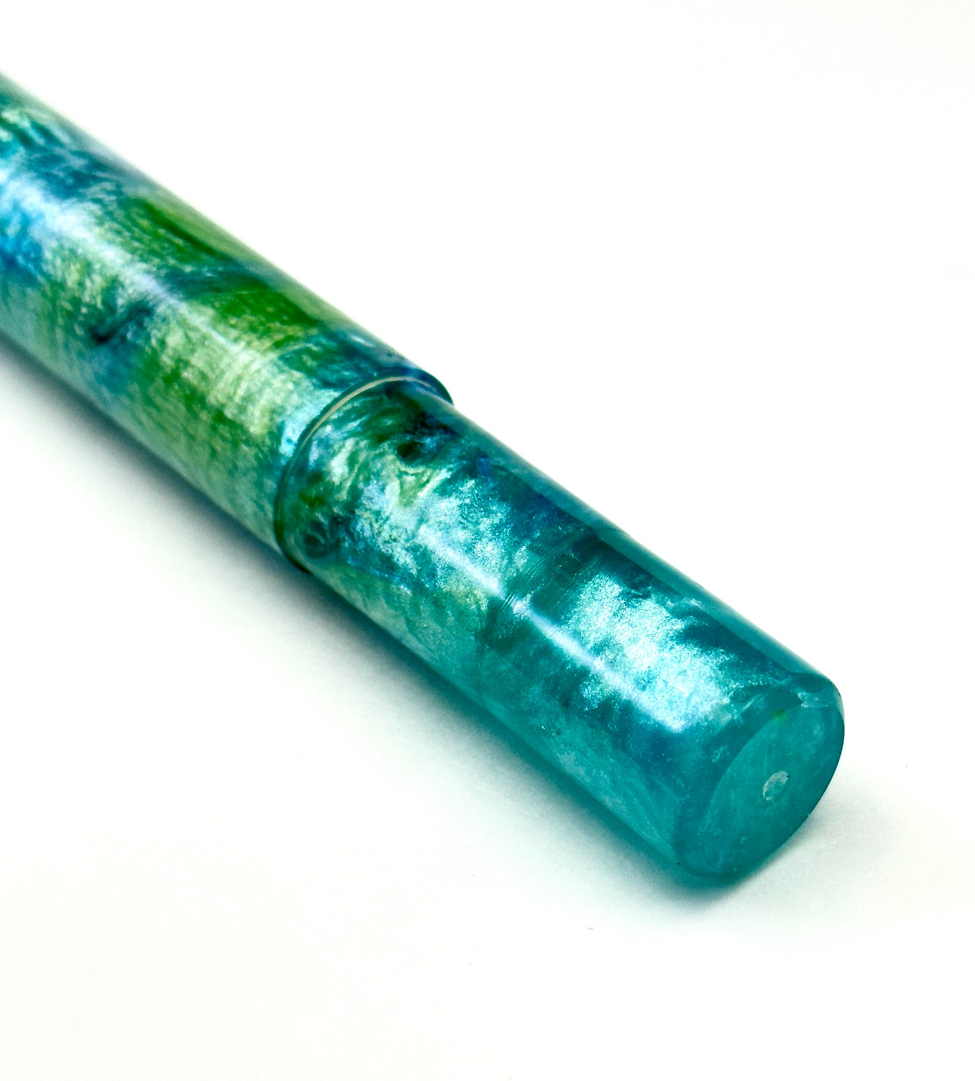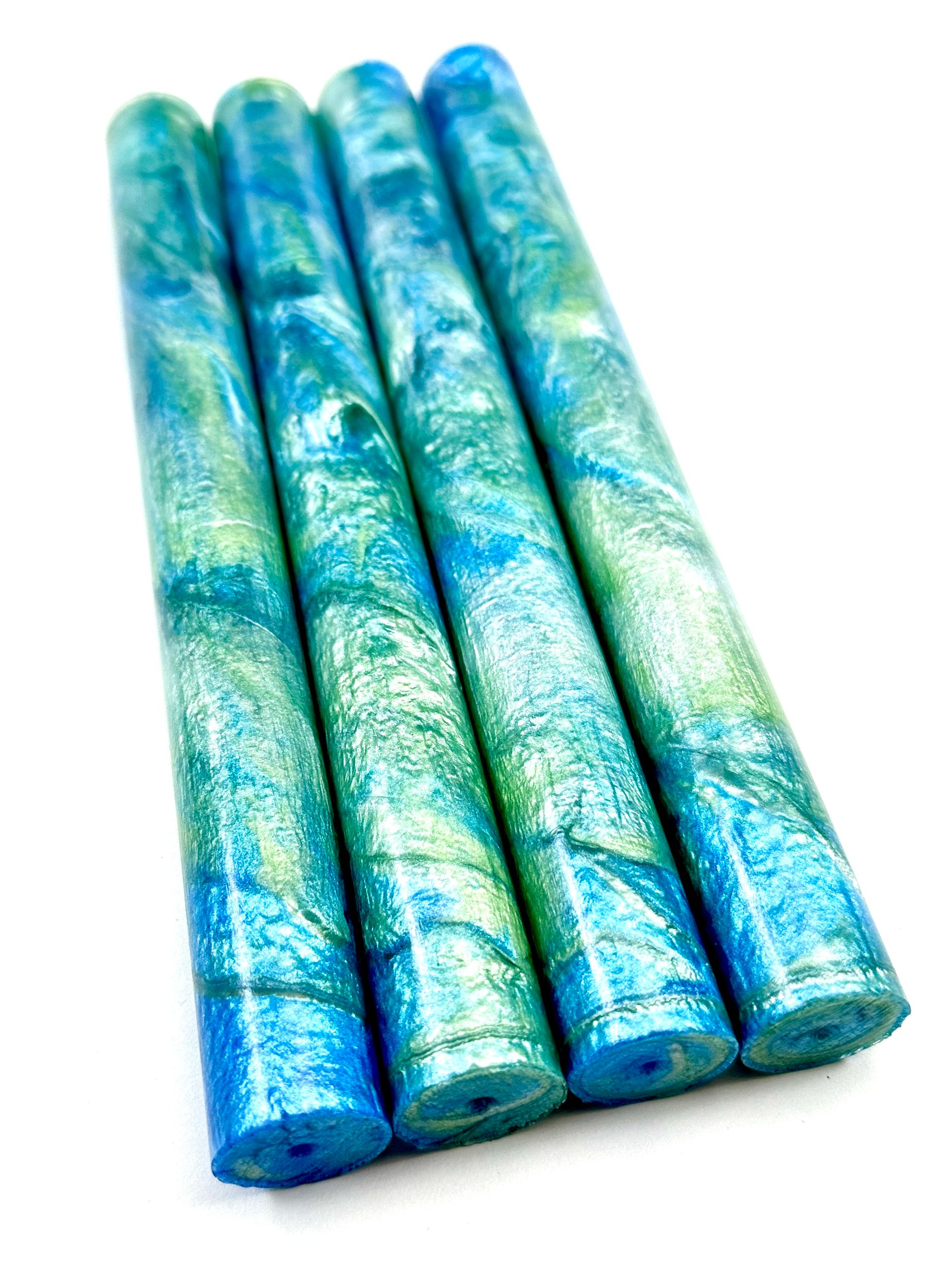 Premium, one of a kind custom bespoke pen blanks. High pressure cast and cured with Alumilite Resin®. 'Blue-green Sea Foam' is cast with high quality Eye Candy Pigments®, including several shades of blue, green and opaque white, mixed with clear resin, resulting in a stunning blank! Made in small batches. These are exclusive, top of the line blanks we offer to custom pen makers. Perfect for the high end fountain pen maker.