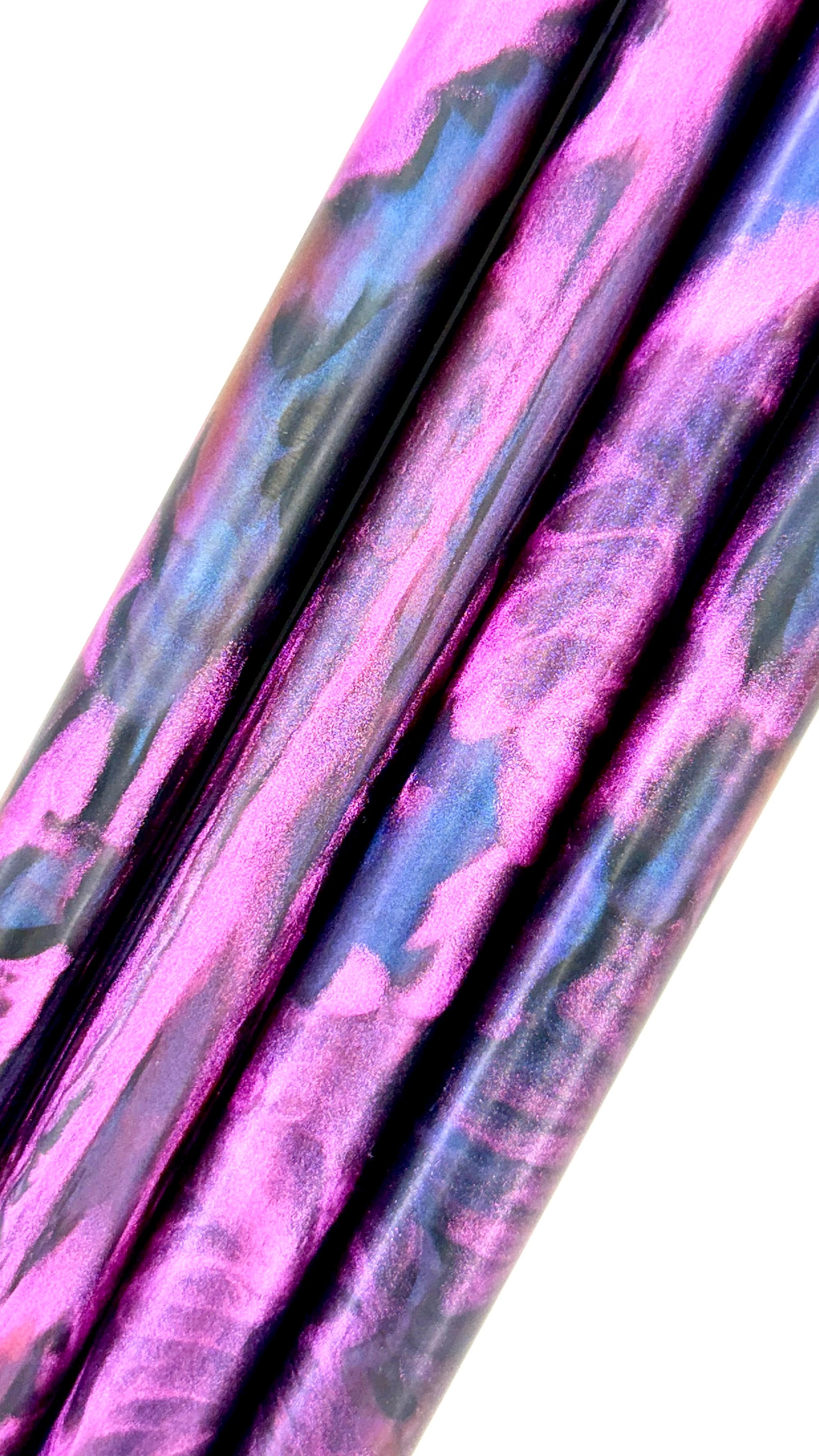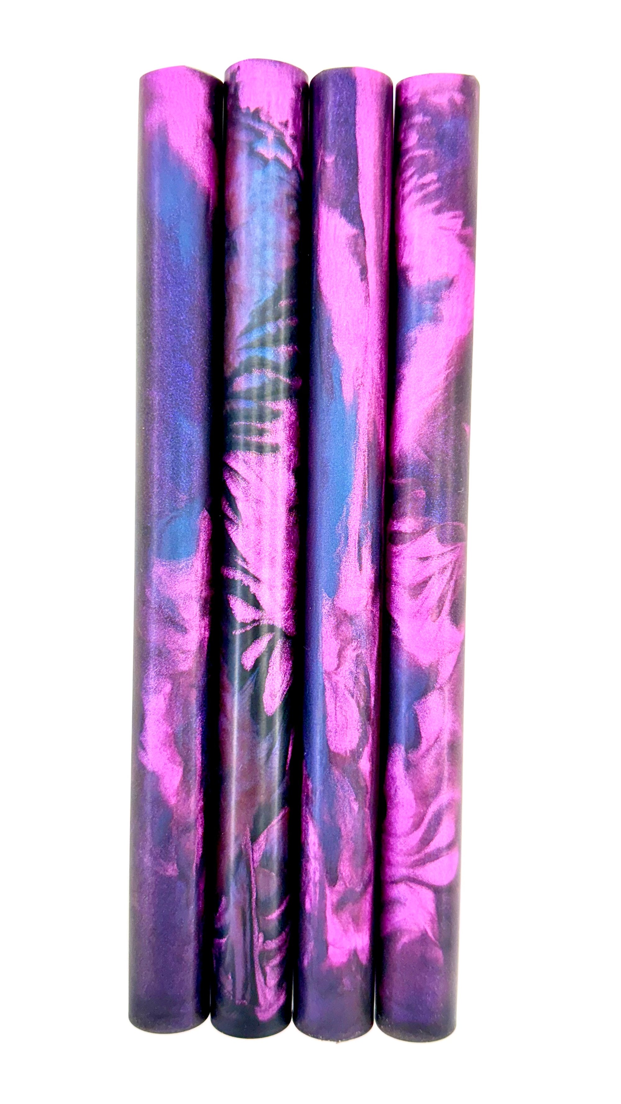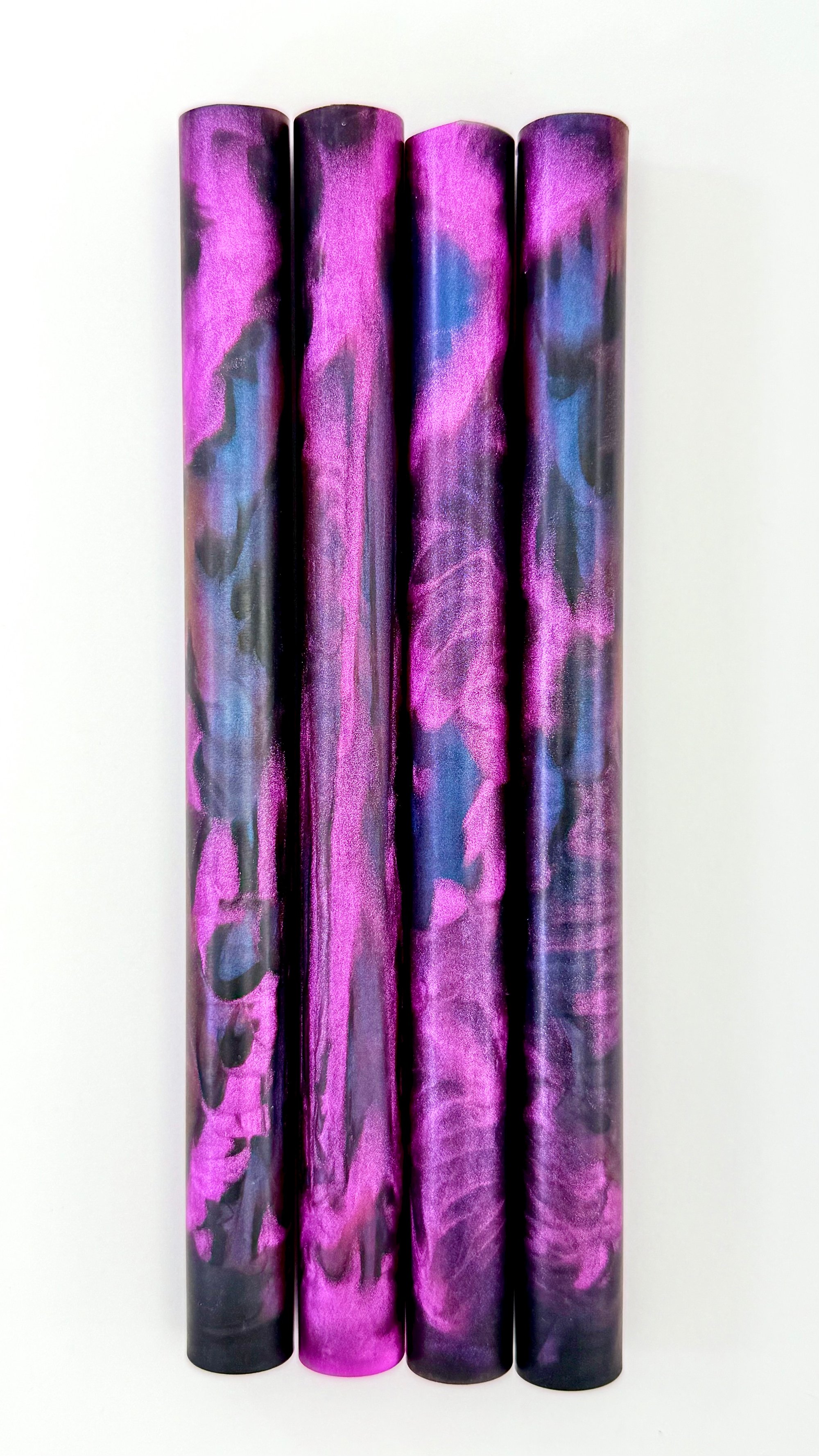 Premium, one of a kind custom bespoke pen blanks. High pressure cast and cured with Alumilite Resin®. 'Cartwheel Galaxy' is a great mix of high grade pigments and dyes, including several shades of purple, proprietary color-shift pigments and mixed with complimentary translucent colors. Made in small batches, these are exclusive, top of the line blanks we offer with high end fountain pen makers in mind, but they're also great for any maker looking for unique material. This blank is full of depth and color-shifting surprises!