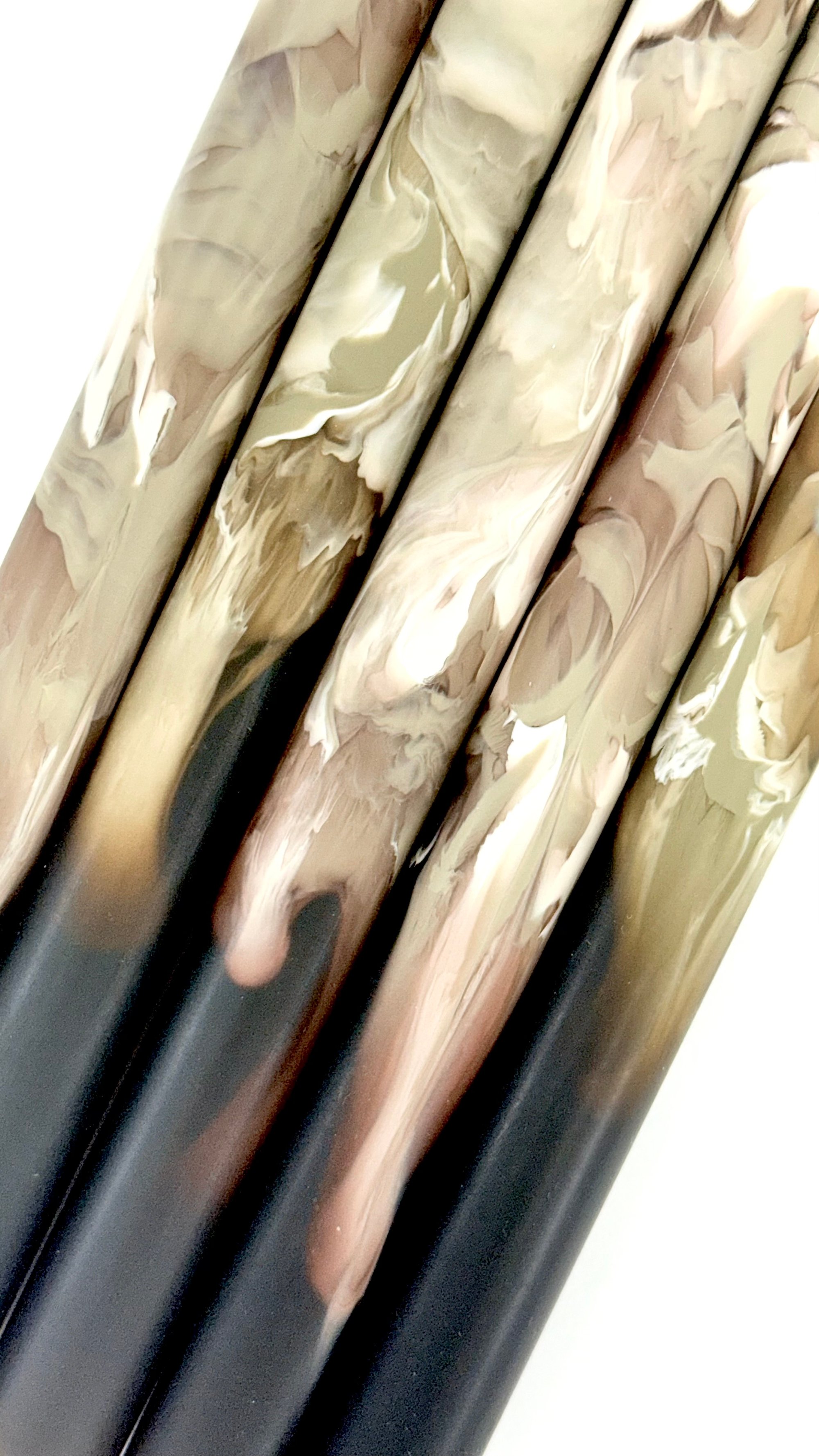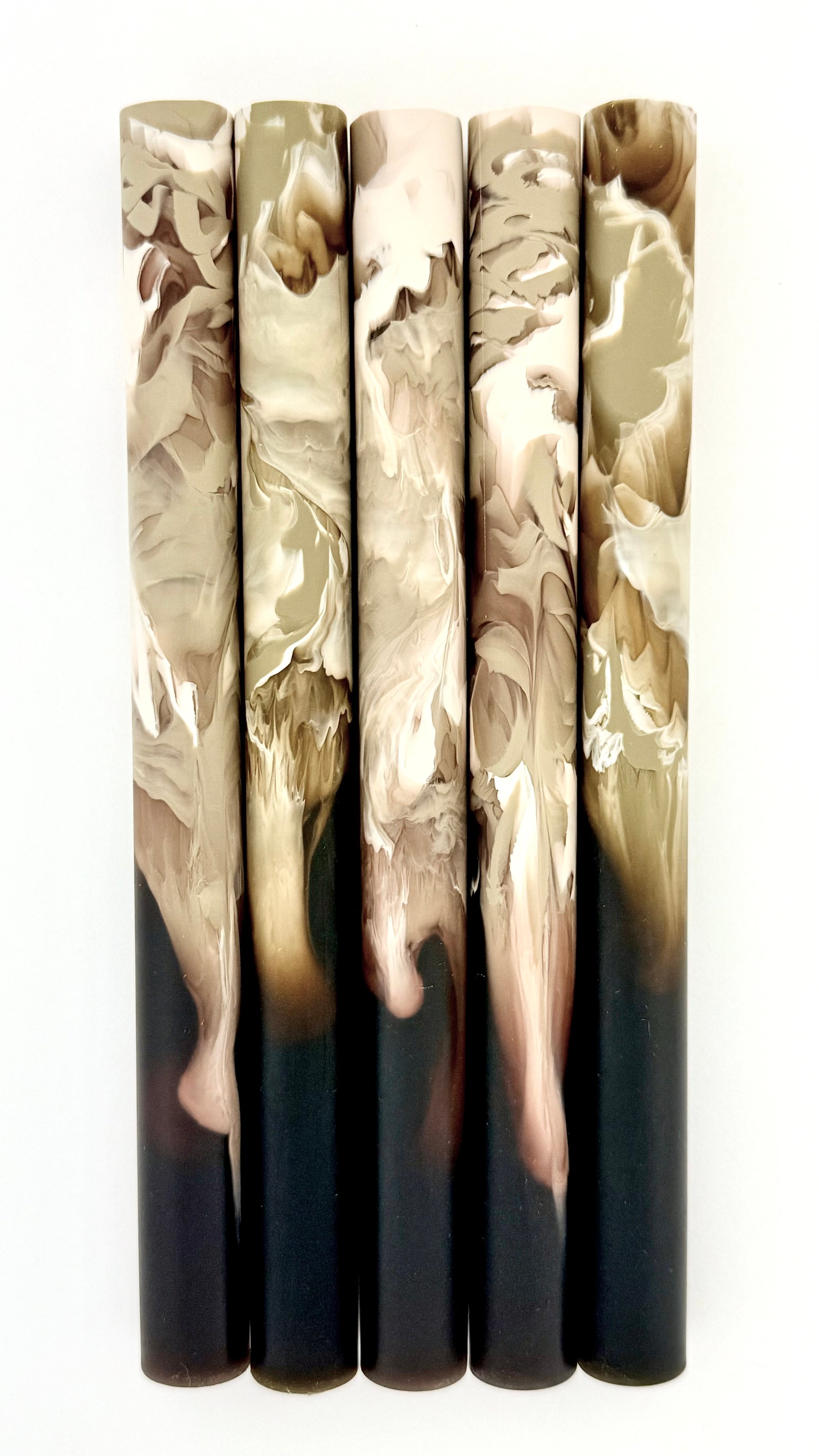 Custom Bespoke Makers Blank! 'Espresso Grande’ is high pressure cast using Alumilite resin, translucent dyes along with a mix of creamy coffee browns, tans, mocha and topped off with a frothy vanilla. Cast in small batches and made for custom pen makers in mind, but also taking into consideration other hand-made craft Makers who require one of a kind, high end materials for their craft. This is it!