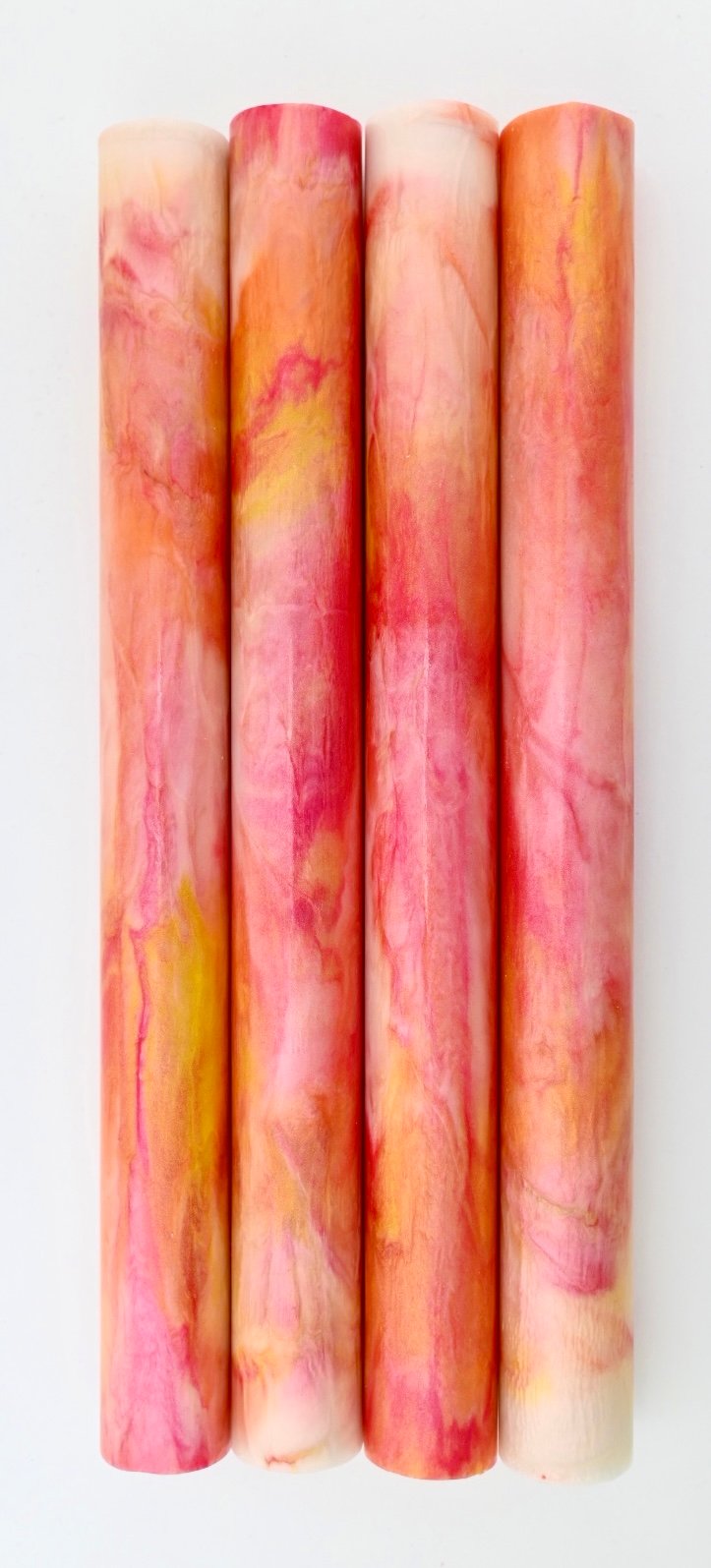 Premium, one of a kind pen blanks. High pressure cast and cured with Alumilite Resin® and unique blends of Eye Candy® mica pigments. 'Wasatch Sunrise' is cast using red ghost pigments, mixed in with deep reds, yellows and oranges. Made in small batches. Top of the line blanks we offer to all custom pen makers. The perfect blank for kit and diamond painting pens!