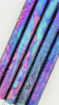 Premium, one of a kind custom bespoke pen blanks. High pressure cast and cured with Alumilite Resin®. 'Immaculate Constellation' is cast using high quality mica pigments with proprietary mixed Chatoyance specific pigments that create a very unique color-shift experience. Colors will range from frosty pink to tepid teal and gorgeous greens all mixed in a sparkling translucent deep purple, resulting in a stunning blank! This blank contains incredible depth and the chatoyancy within it is mind blowing! It's like holding the cosmos in your hand! Made in small batches. These are exclusive, top of the line blanks we offer to custom makers. Perfect for the high end fountain pen maker, and advanced pen kit makers. Offered to other Makers of fine crafts as well.