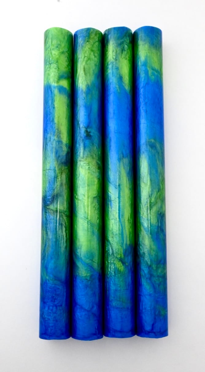 Premium, one of a kind custom bespoke pen blanks. High pressure cast and cured with Alumilite Resin® and unique blends of Mad Micas® pigments. 'Limitless' includes several shades blue, green, translucent red and translucent purple, resulting in a beautiful blank! Made in small batches. These are exclusive, top of the line blanks we offer to custom pen makers. Perfect for the high end fountain pen maker, but would also look fantastic on a kit pen.