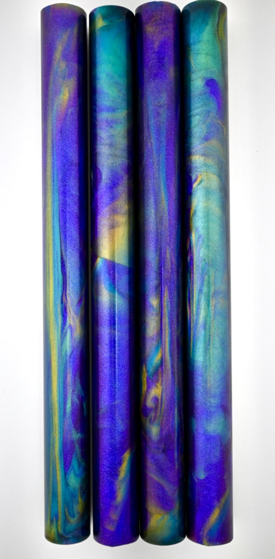 Oumuamua, custom bespoke pen blanks. Pressure cured Alumilite resin, hyper color-shift pigments