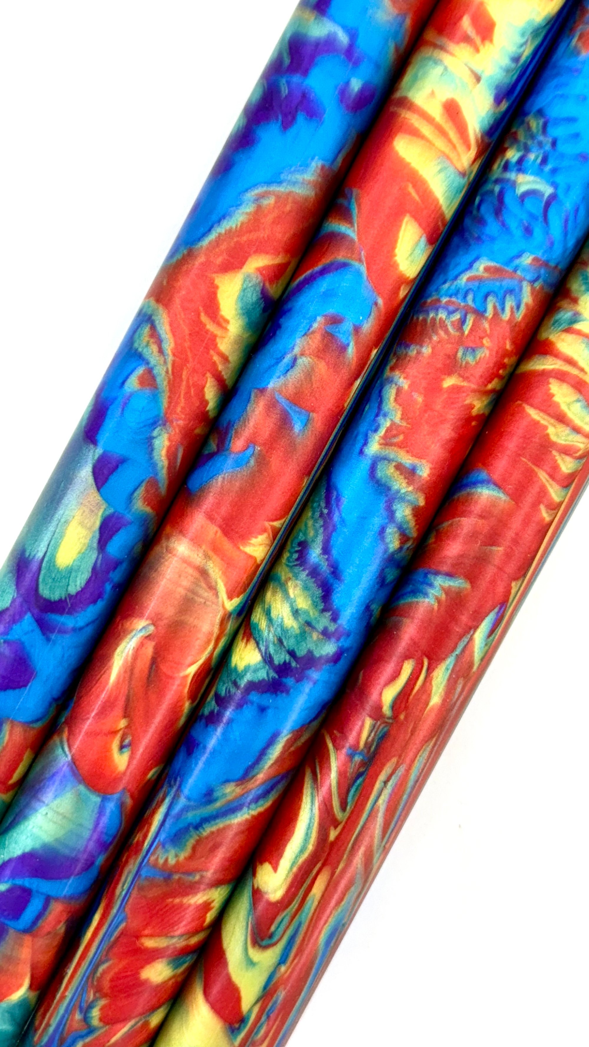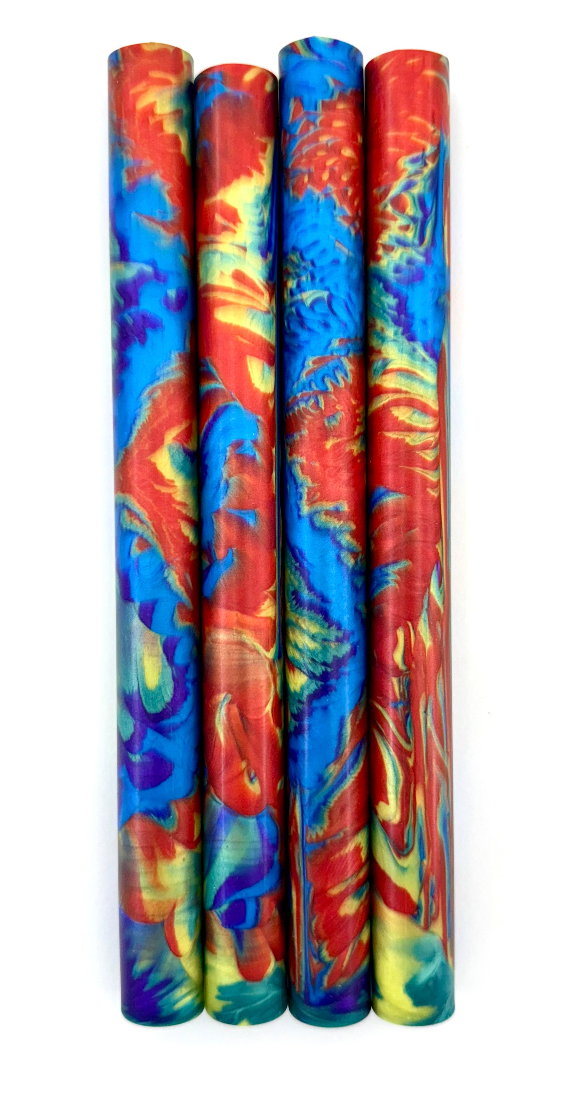 Premium, one of a kind custom bespoke pen blanks. High pressure cast and cured with Alumilite Resin® and unique blends of high quality mica pigments and dyes. 'Pandora's Box' is a gorgeous blank, mixed with 'ghost' pigments and shades of blue, yellow, green, pink and purple dyes. Cast in small batches and made for custom pen makers in mind, but also taking into consideration other hand-made craft Makers who require one of a kind, high end materials for their craft. This is it!