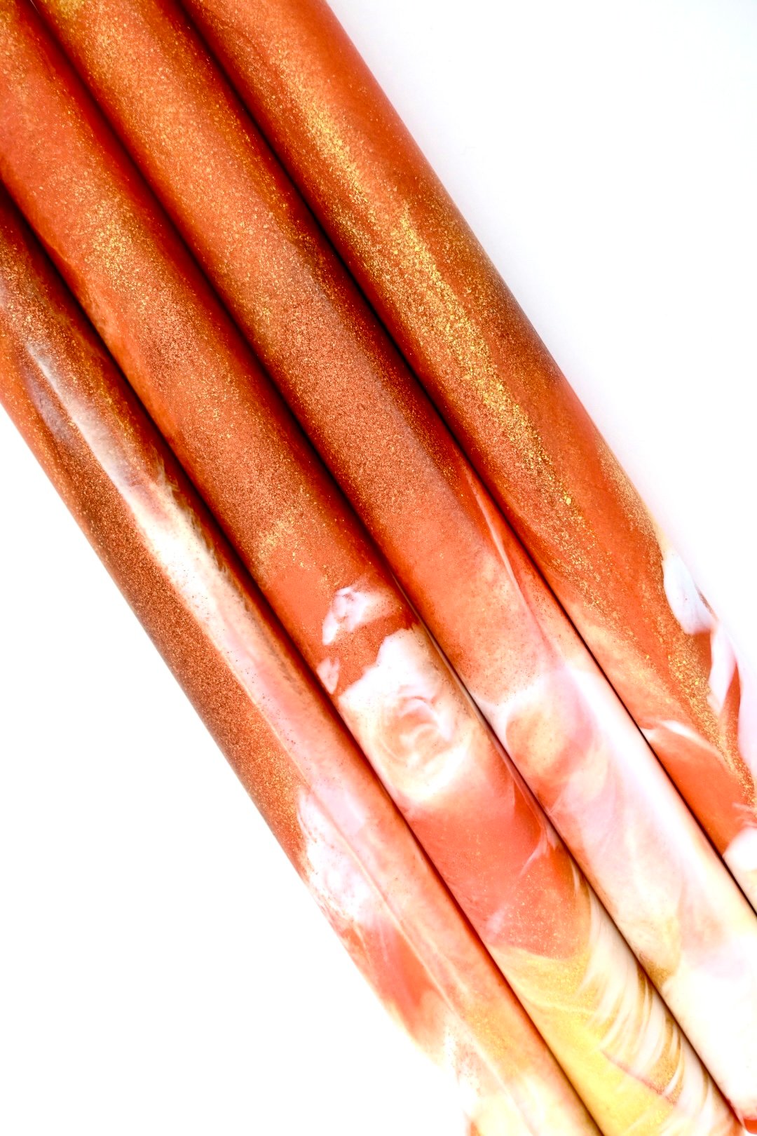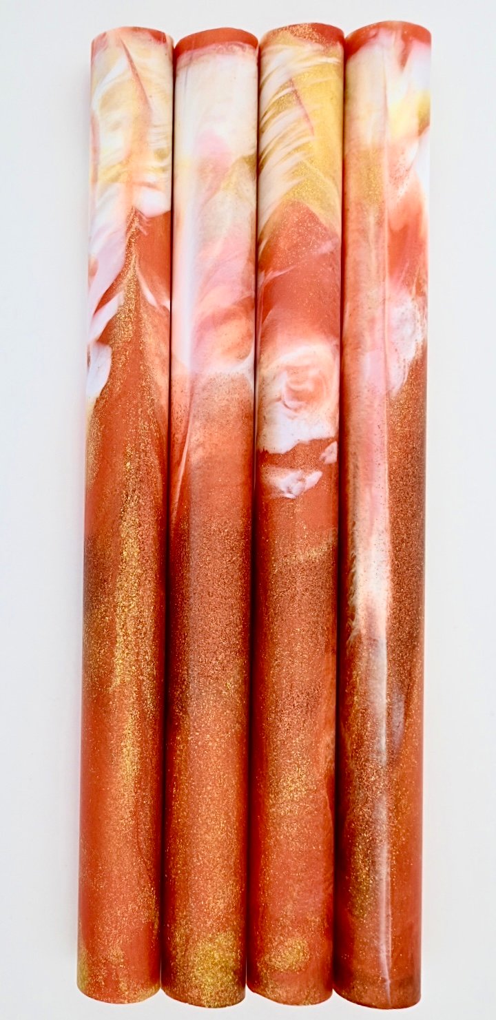 Premium, one of a kind custom bespoke pen blanks. High pressure cast and cured with Alumilite Resin®. 'Pumpkin Spice is a beautiful mix of several shades of orange, golds, opaque off-whites and flecks of gold, resulting in a stunning blank! Made in small batches. These are exclusive, top of the line blanks we offer to custom pen makers. Perfect for the high end fountain pen maker, but would also look fantastic on a kit pen.
