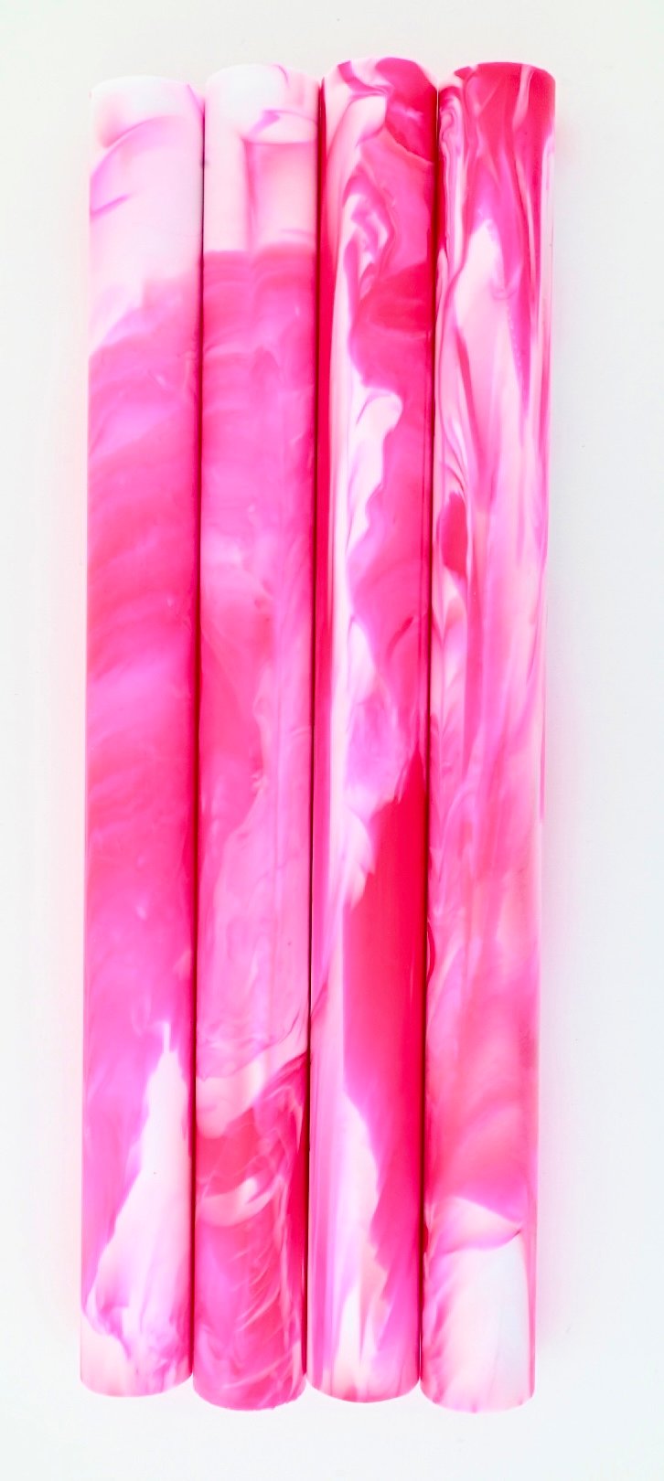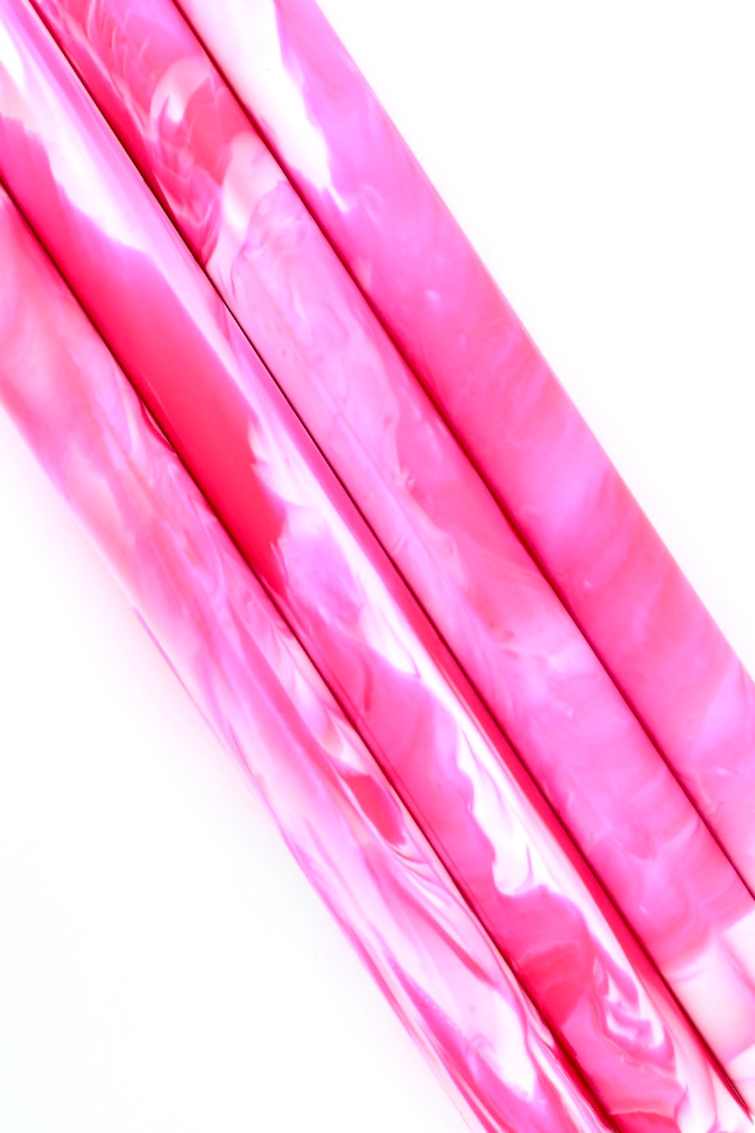 Premium, one of a kind custom bespoke pen blanks. High pressure cast and cured with Alumilite Resin®. 'Razzleberry' is cast with high quality mica pigments, including shades of pink, red and opaque white, resulting in a stunning blank! Made in small batches. These are exclusive, top of the line blanks we offer to custom pen makers. Perfect for the high end fountain pen maker, but would also look fantastic on a kit pen.