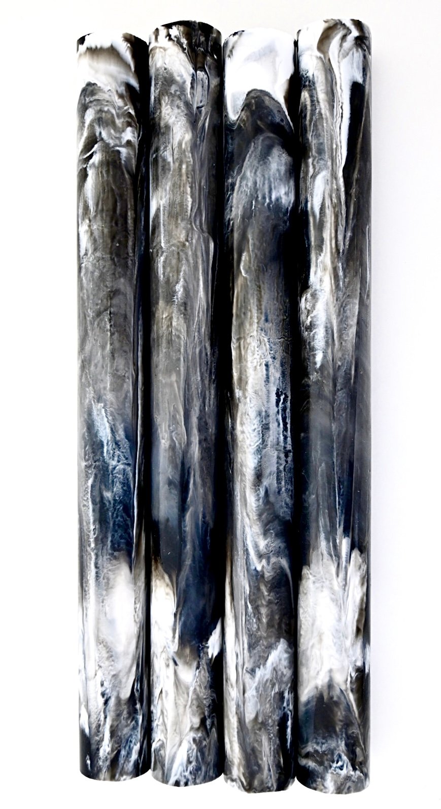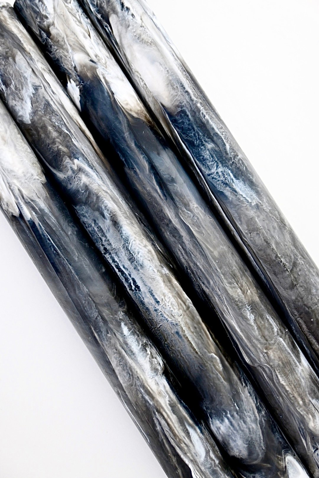 Roll The Bones, High Pressure cast with Alumilite with shades of white, grey and translucent black