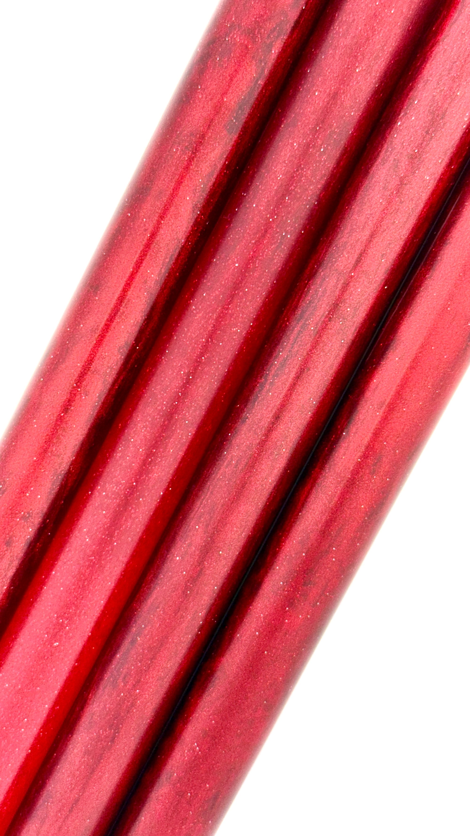 Premium, one of a kind custom bespoke pen blanks. High pressure cast and cured with Alumilite Resin® and unique blends proprietary mica pigments. 'Run Toto, Run!' includes translucent red with holographic bits and a brilliant ruby red mica that mimics Dorthy's slippers in the 'Wizard of Oz'. Made in small batches. These are exclusive, top of the line blanks we offer to custom makers. Perfect for the high end fountain pen Maker or any other custom Maker of fine handmade crafts.