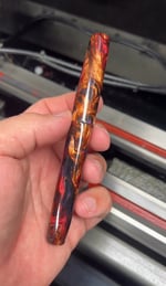 Premium, one of a kind custom bespoke pen blanks. High pressure cast and cured with Alumilite Resin®. 'Shotgun Rider' is a great mix of high grade pigments and dyes, including a black base with purple-blue color-shift, brilliant red and a supernova gold , along with complimentary translucent & opaque colors. Made in small batches, these are exclusive, top of the line blanks we offer with high end fountain pen makers in mind, but they're also great for any maker looking for unique material.