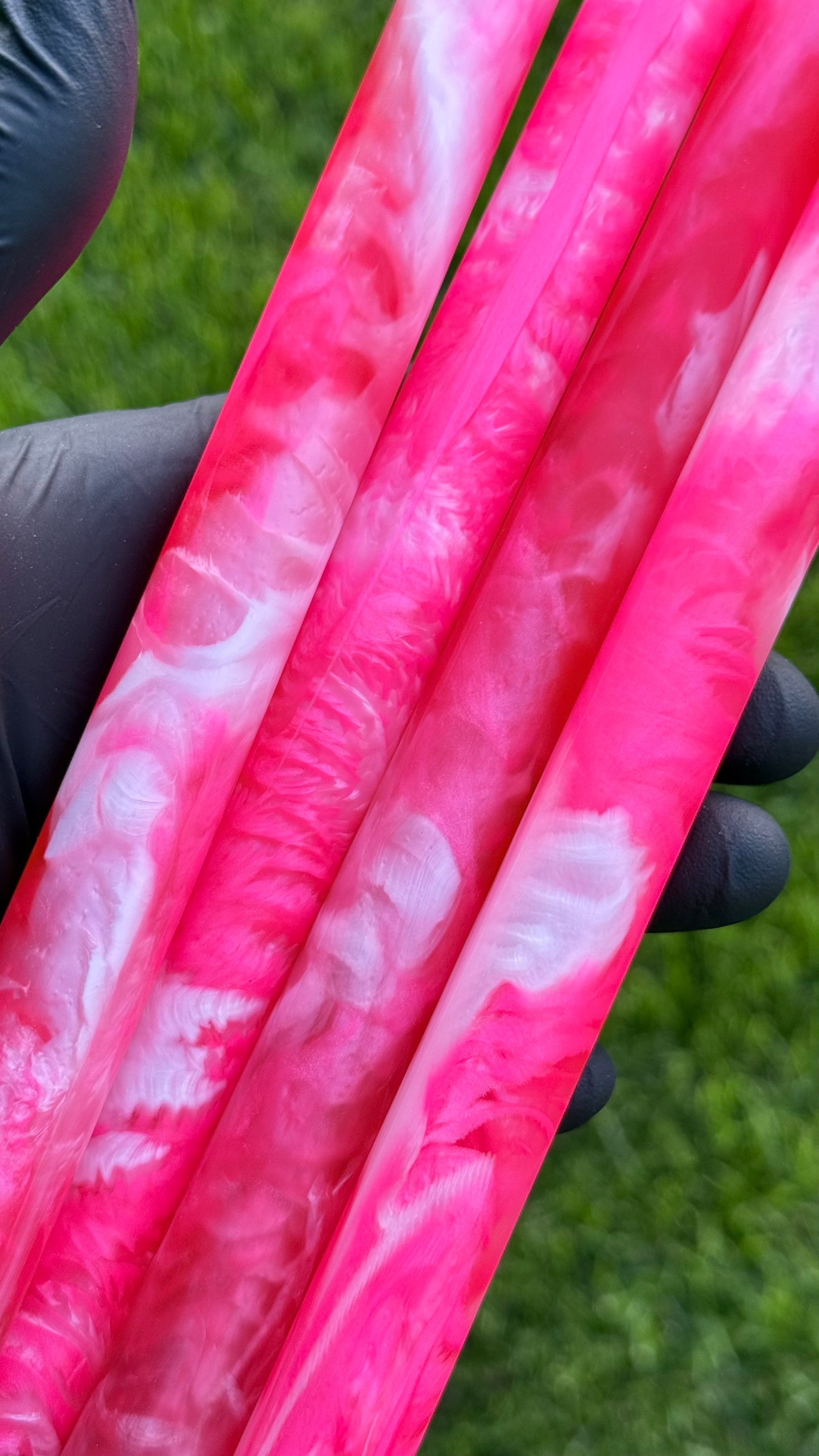Premium, one of a kind custom bespoke pen blanks. High pressure cast and cured with Alumilite Resin® and unique blends of mica pigments. 'Sixteen Candles' is a great combination of shimmery bubblegum pink, frosted white and a beautiful translucent pink base. Made in small batches. These are exclusive, top of the line blanks we offer to custom makers. Perfect for the high end fountain pen maker, and advanced pen kit makers. Offered to other Makers of fine crafts as well.
