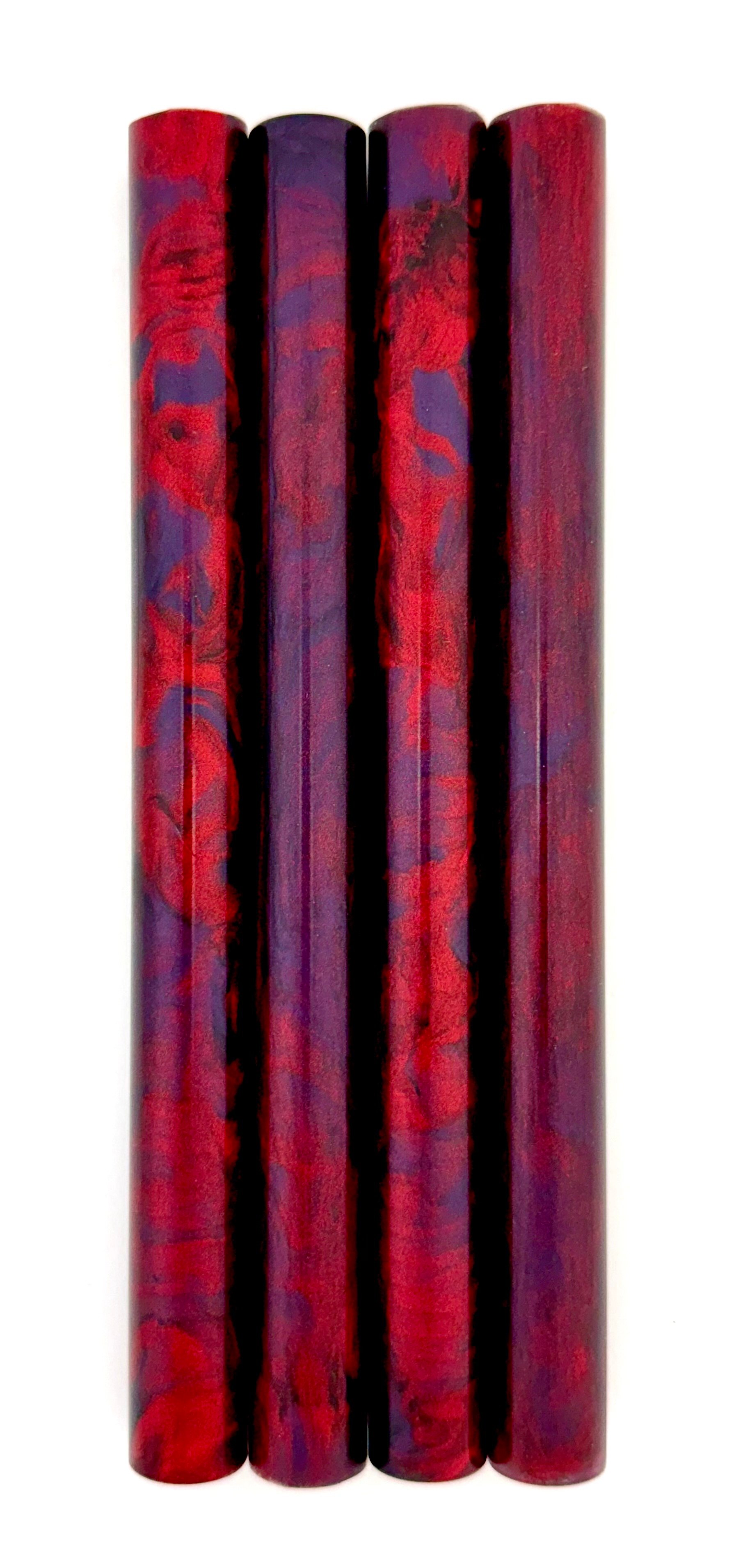 Premium, one of a kind custom bespoke pen blanks. High pressure cast and cured with Alumilite Resin® and unique blends of high quality, proprietary custom pigment mixes. 'Slinging Napalm' includes a complex mix of napalm red, dark tempest purple and complimentary translucent colors. Made in small batches. These are exclusive, top of the line blanks we offer to custom makers. Perfect for the high end fountain pen Maker or any other custom Maker of fine handmade crafts.