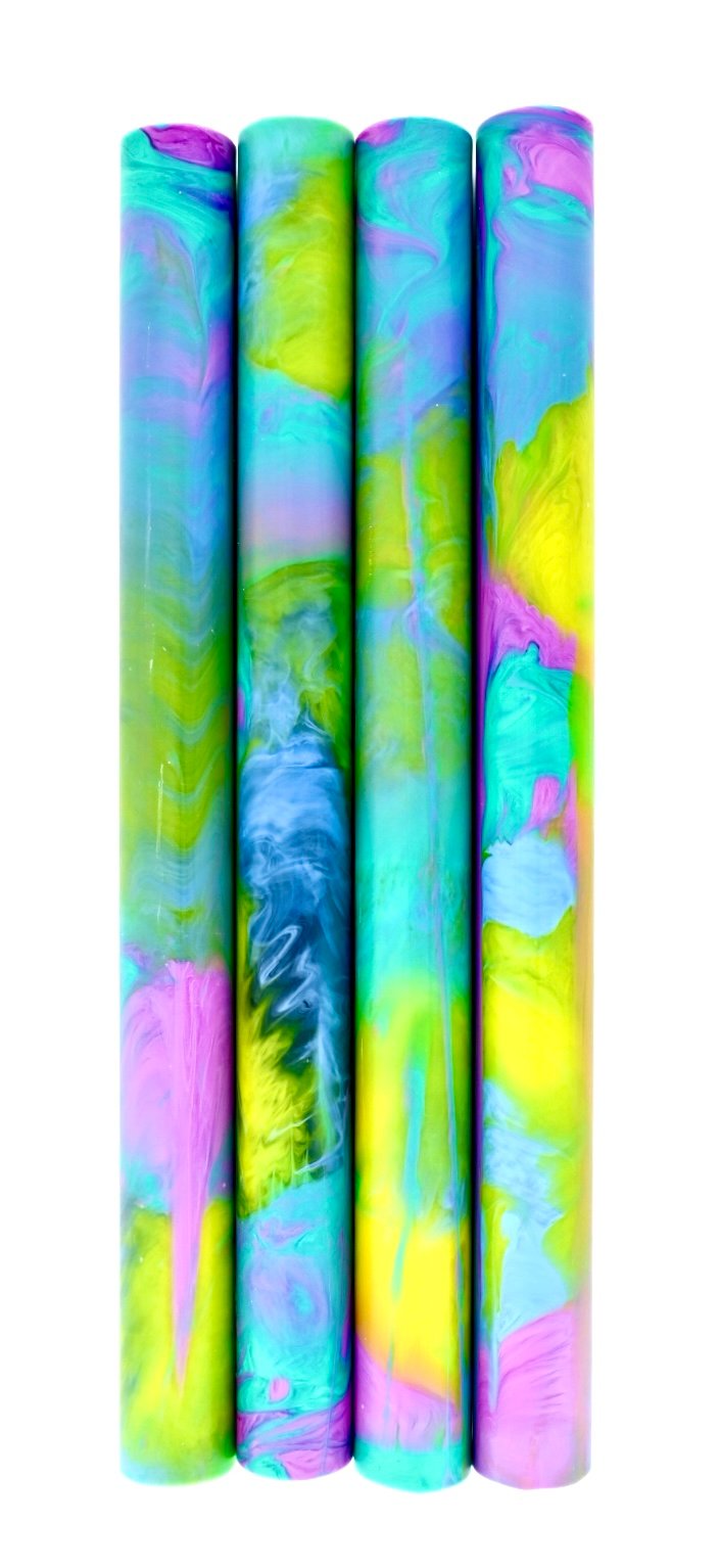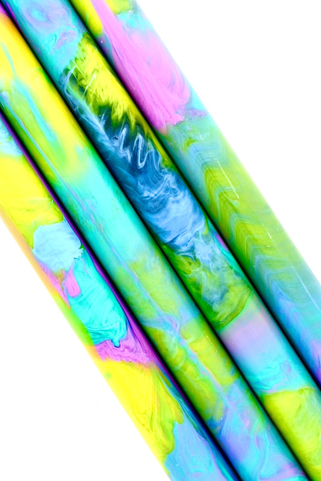 Premium, one of a kind custom bespoke pen blanks. High pressure cast and cured with Alumilite Resin®. 'Stacy's Mom' is cast with opaque dyes of yellow, light blue, green, purple and white mixed in combination with clear resin, resulting in a stunning blank! Made in small batches. These are exclusive, top of the line blanks we offer to custom pen makers. Perfect for the high end fountain pen maker, but would also look fantastic on a kit pen.